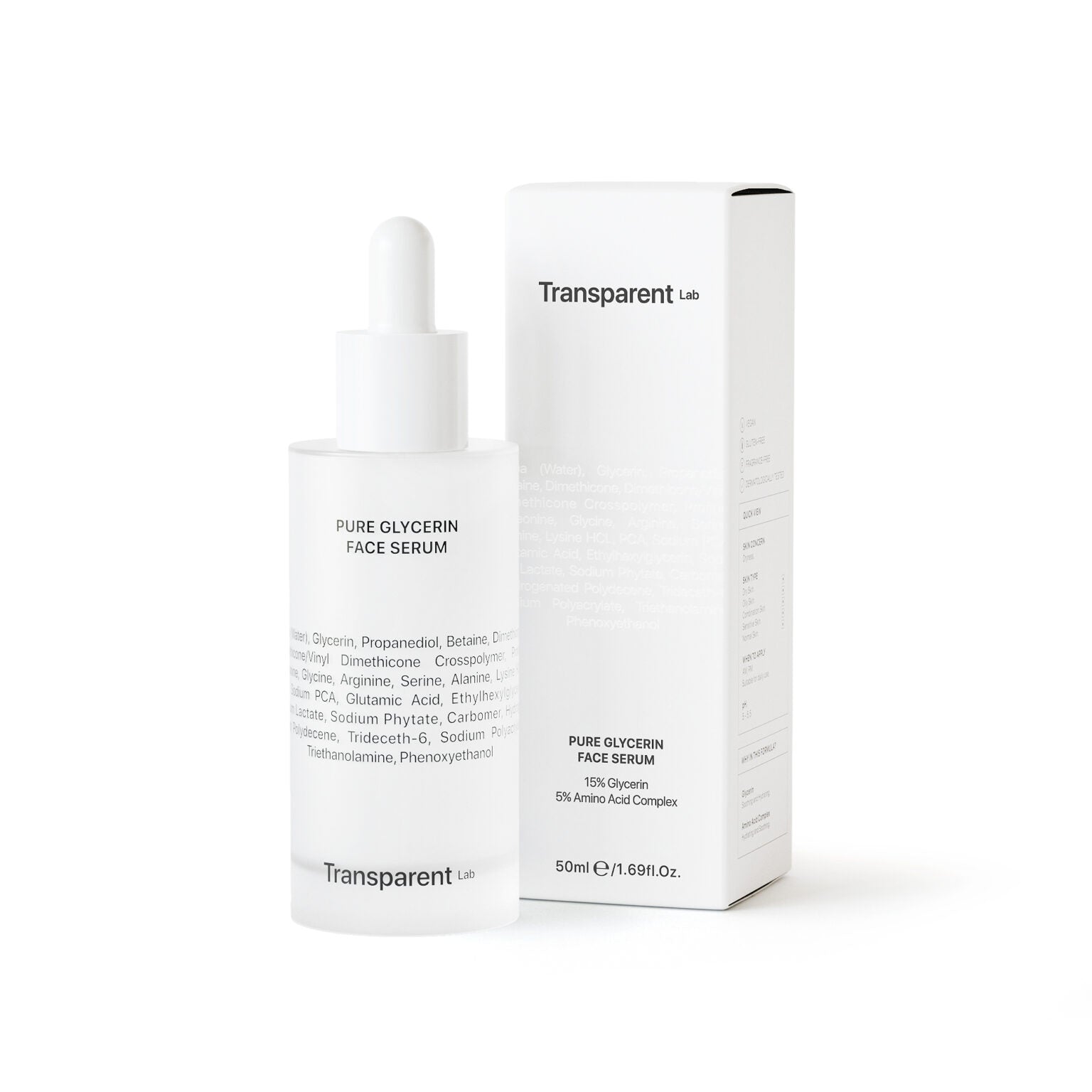 Ορός ενυδάτωσης προσώπου με Γλυκερίνη από την Transparent Lab, ιδανικός για ξηρή και αφυδατωμένη επιδερμίδα. Εμπλουτισμένος ορός με 15% Γλυκερίνη, προσφέρει βαθιά ενυδάτωση και θρέψη στην επιδερμίδα, παρέχοντας προστασία και απαλότητα. Οι ισχυρές ενυδατικές ιδιότητες της Γλυκερίνης προλαμβάνουν την απώλεια νερού μέσω της επιδερμίδας, διατηρώντας τα απαραίτητα επίπεδα ενυδάτωσης.